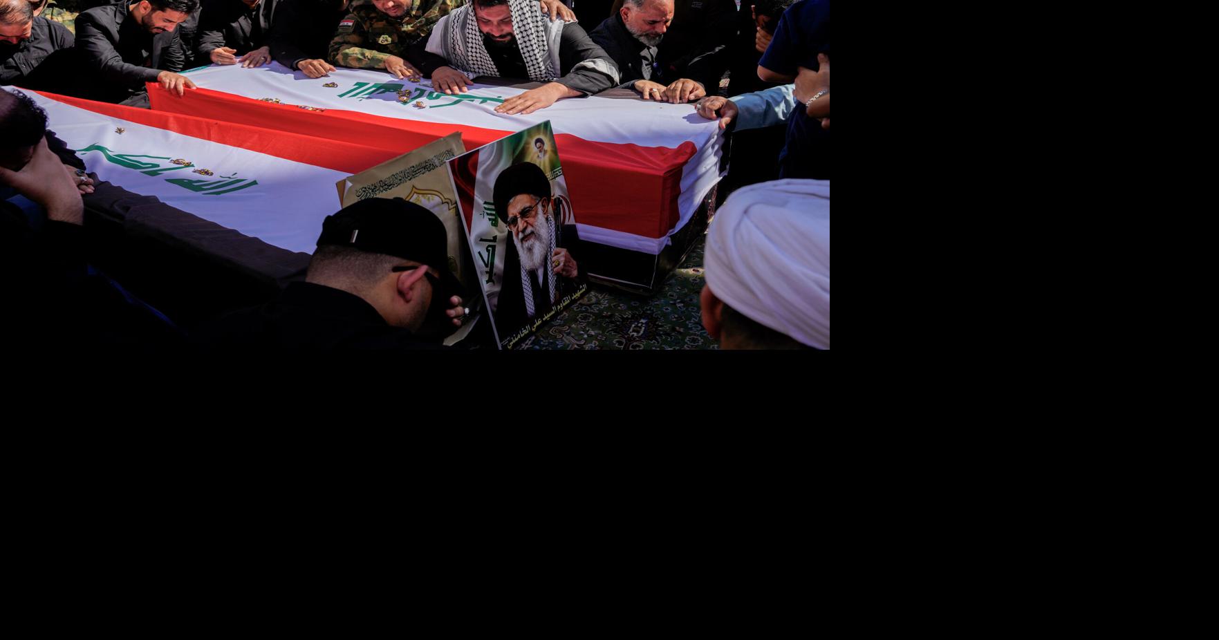 Relatives react during a funeral of a Popular Mobilization Forces fighter who were killed in a U.S. airstrike in Anbar, in Najaf, Iraq, Wednesday, April 1 2026. (AP Photo/Anmar Khalil)